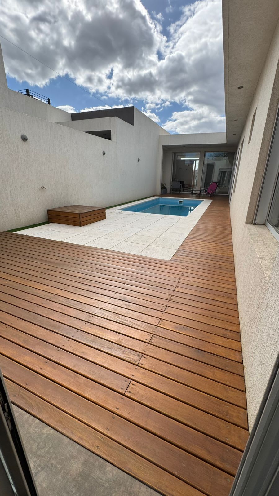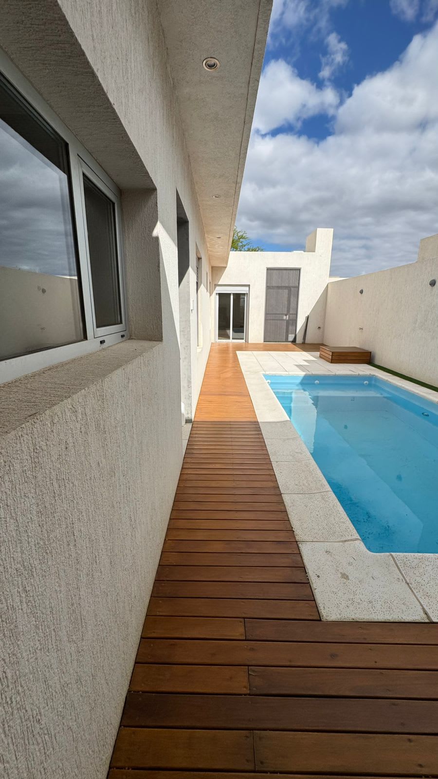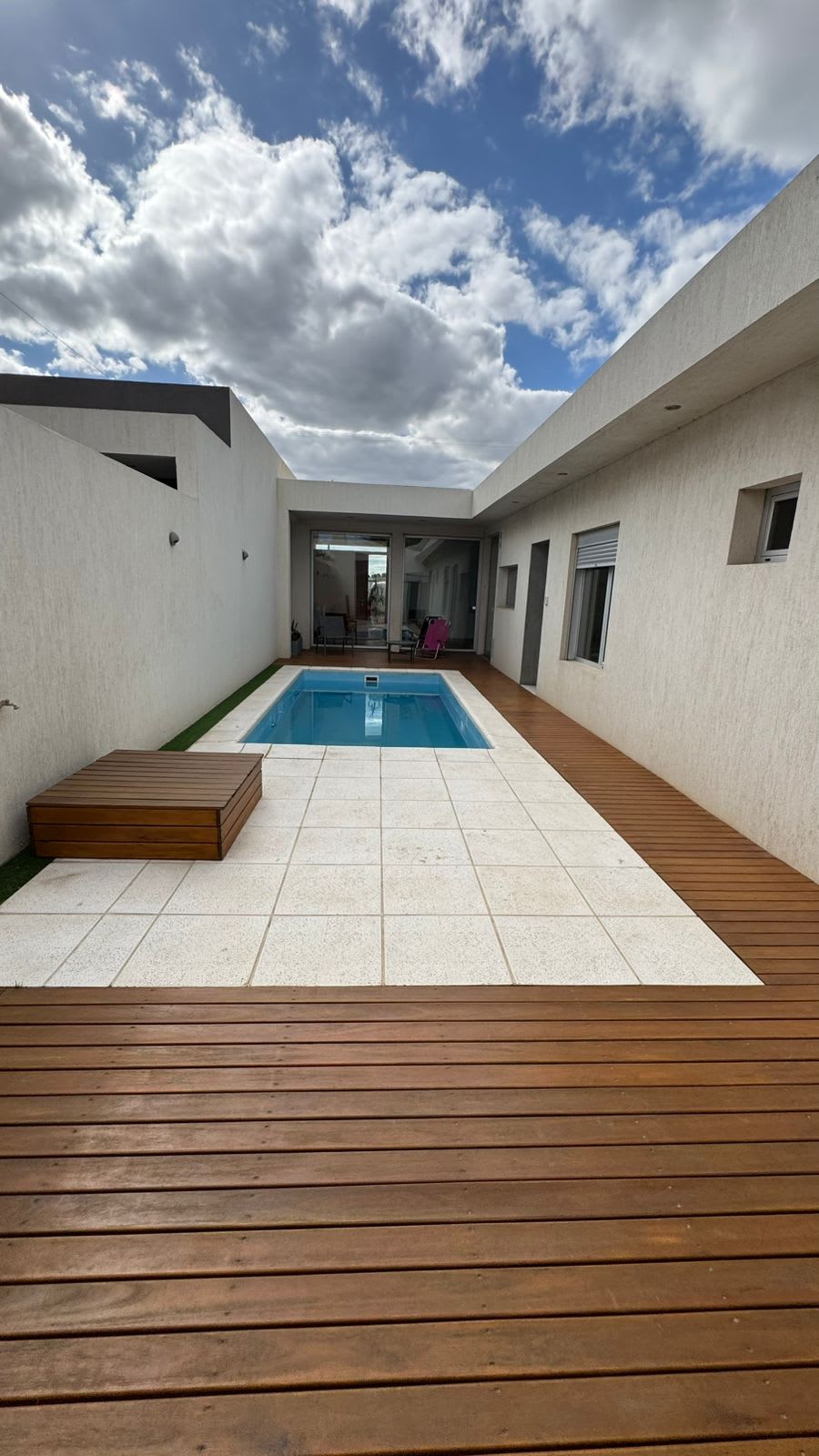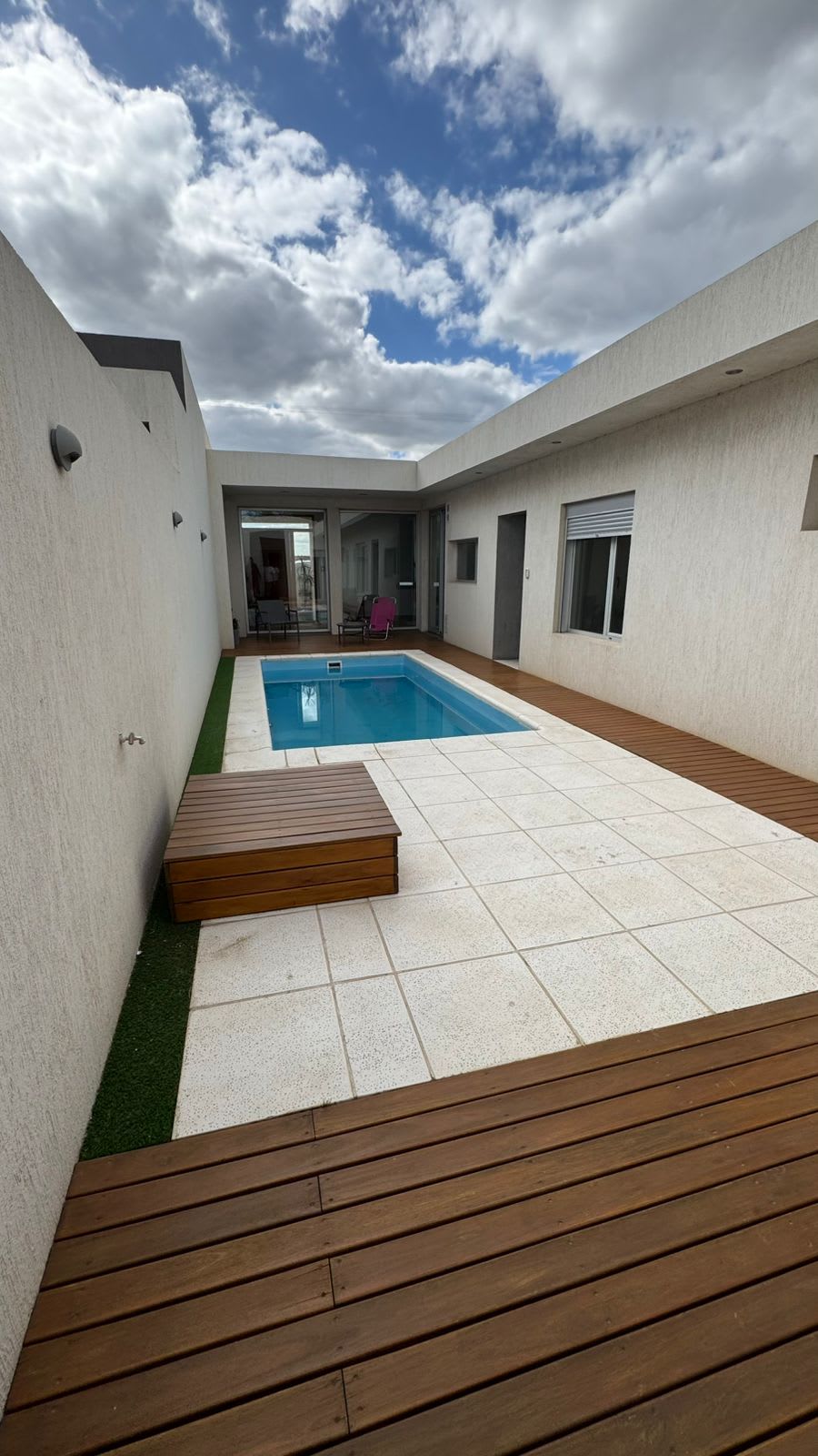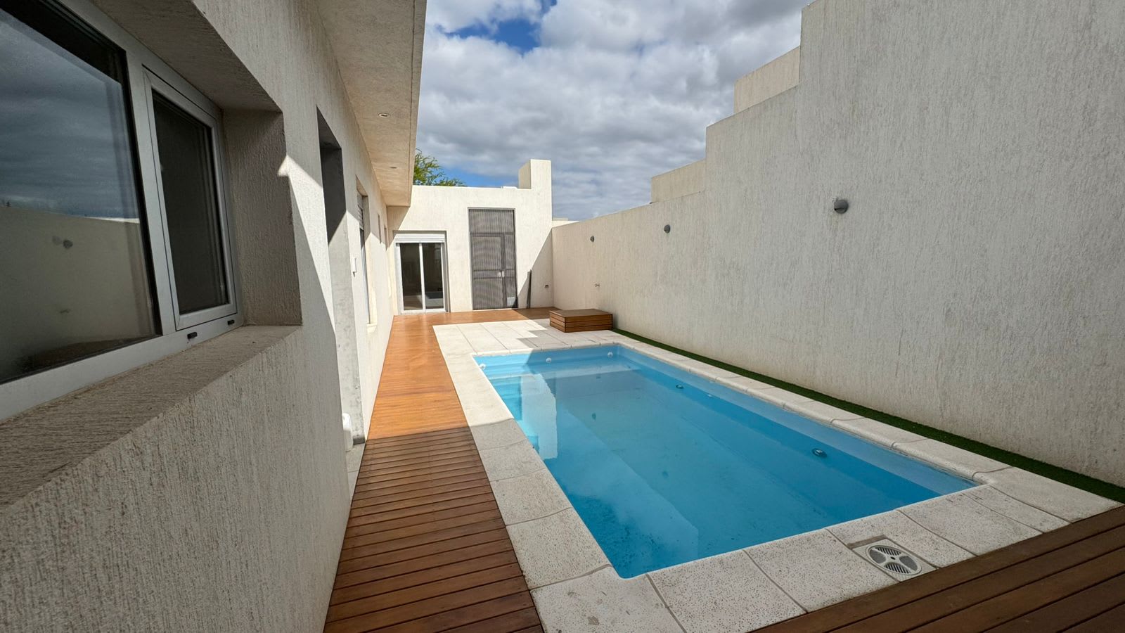 Hacia el fondo, el patio seco propone el plan perfecto para todo el año: PILETA lista para climatizar, parrilla, baño exterior, práctico lugar de guardado y ducha para la pileta. La experiencia se completa con terminaciones de calidad: pisos de porcelanato, aberturas de aluminio con DVH, persianas en los dormitorios, iluminación LED y doble portón eléctrico para el ingreso de vehículos.